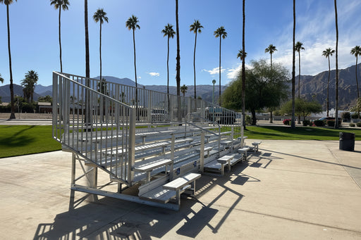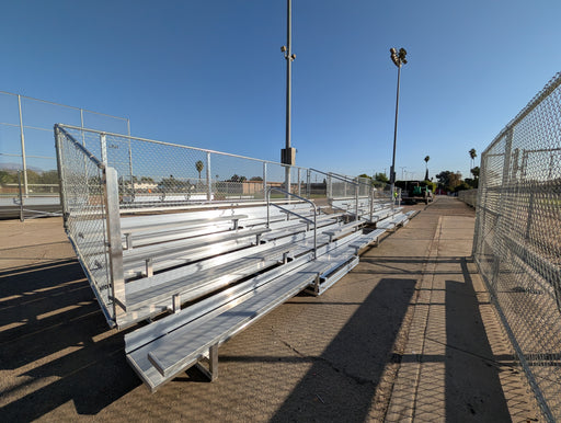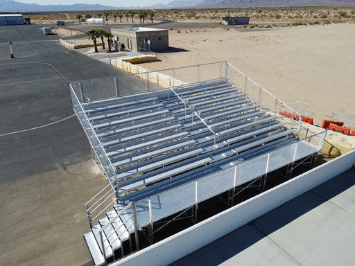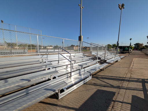 View full details5 Rows Non-Elevated Bleacher Economic x 27' comes with anodized 2''x10'' aluminum seat boards and (Single) 2''x10'' mill finish footboard and all ...