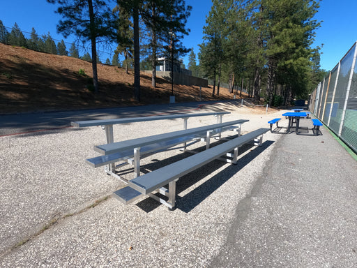 View full details5 Rows Non-Elevated Bleacher Economic x 15' comes with anodized 2''x10'' aluminum seat boards and (Single) 2''x10'' mill finish footboard and all w...