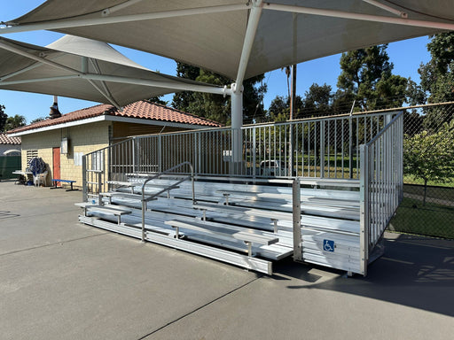 View full details5 Rows Non-Elevated Bleacher Picket/ADA x 21' comes with anodized 2''x10'' aluminum seat boards and (Double) 2''x10'' mill finish footboards and al...