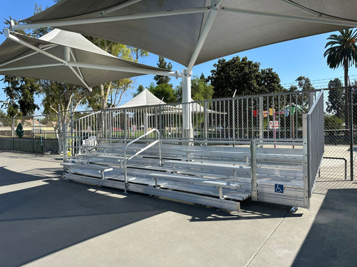View full details5 Rows Non-Elevated Bleacher Picket/ADA x 15' comes with anodized 2''x10'' aluminum seat boards and (Double) 2''x10'' mill finish footboards and al...